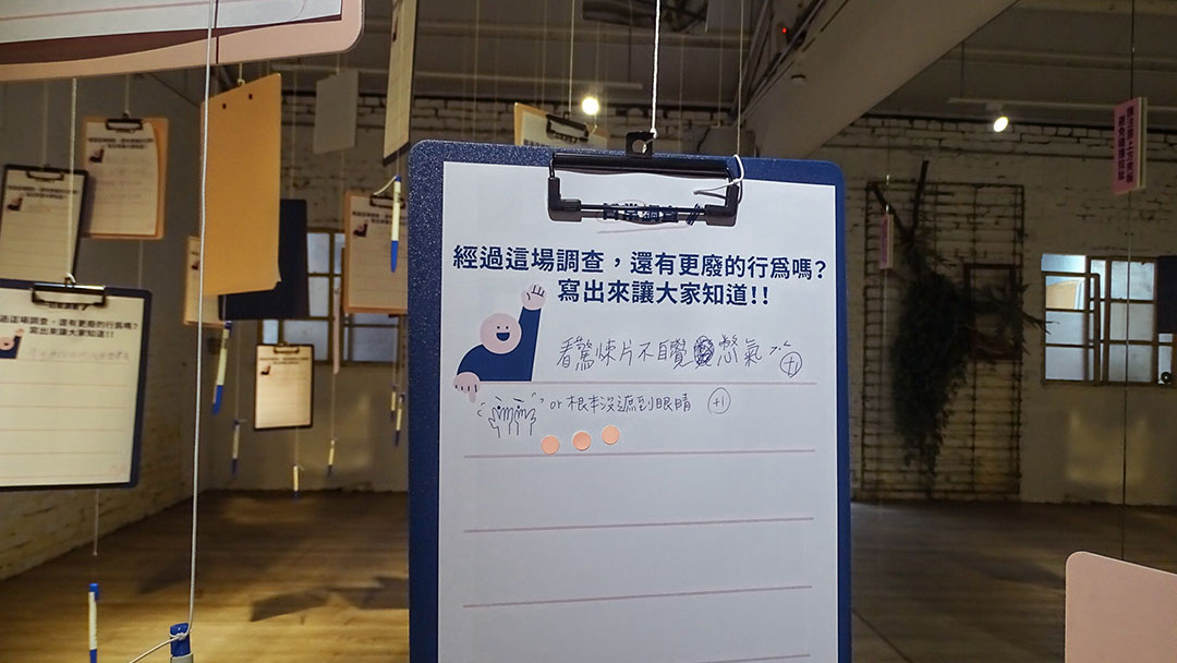 展覽的主軸是「如果你也會做這個行為,就在框框貼一張貼紙」,我們也使用各種不同形式來表現出這些好廢日常行為、和觀眾互動。