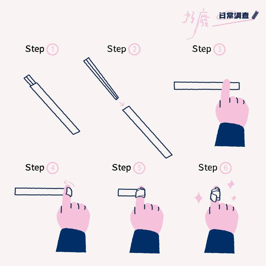 還有人是先在線上看到貼文,後來到線下展覽時特地留下回應,比如把我們的卷筷子套步驟畫出來重現在展覽中,甚至補充更多他們好廢的日常行為給我們。