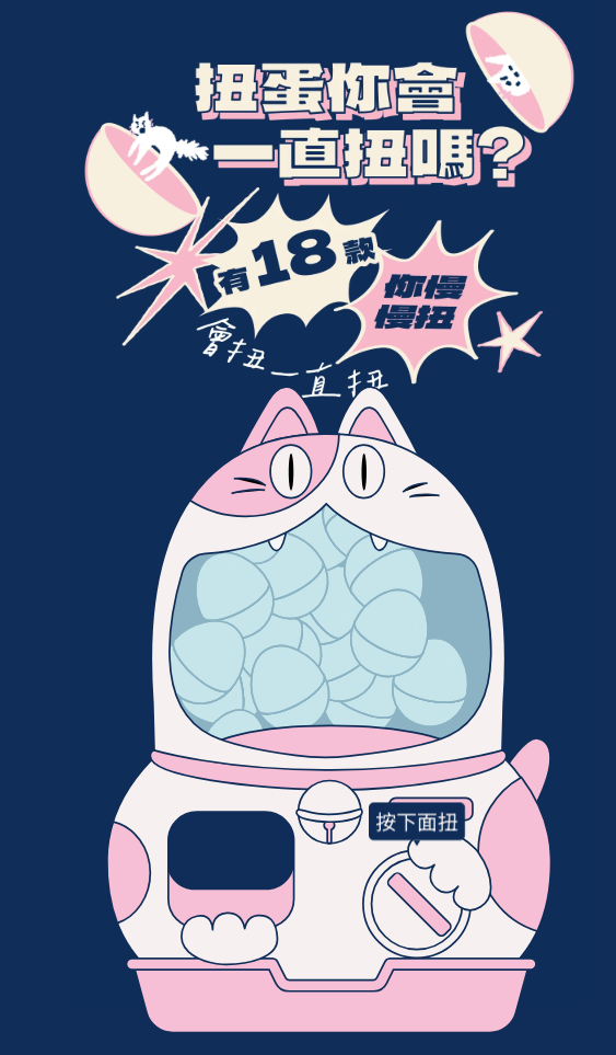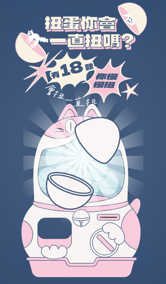 我們幫 OOOPEN Lab 設計了一款扭蛋機版型,後續就也延伸這個版型,以貓咪為主題,製作了「好廢的問卷-貓咪扭蛋機」!
